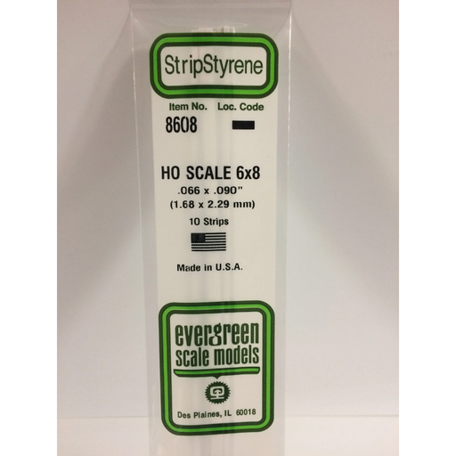 Evergreen Scale ModelsEvergreen 8608 HO Scale Strips 6 x 8 1.7 x 2.3 x 350 mm (0.066 x 0.090 x 14 in).066" X .090" X 14" / 1.7mm X 2.3mm X 35cmDIMENSIONS REPLICATE 6 x 8...