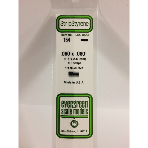 Evergreen Scale ModelsEvergreen 154 Strip 0.060 x 0.080 x 14 in (1.5 x 2.0 x 350 mm).060" X .080" X 14" / 1.5mm X 2.0mm X 35cmEvergreen Scale Models is the world's larg...
