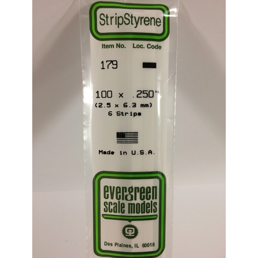 Evergreen Scale ModelsEvergreen 179 Strip 0.100 x 0.250 x 14 in (2.5 x 6.3 x 350 mm).100" X .188" X 14" / 2.0mm X 4.8mm X 35cmEvergreen Scale Models is the world's larg...