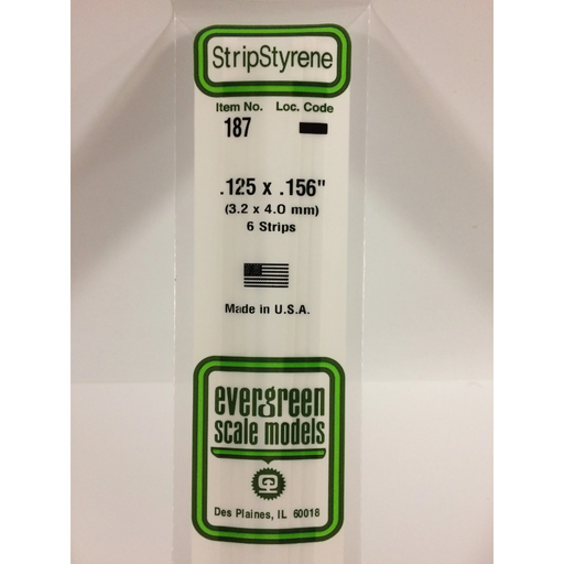 Evergreen Scale ModelsEvergreen 187 Strip 0.125 x 0.156 x 14 in (3.2 x 4.0 x 350 mm).125" X .156" X 14" / 3.2mm X 4.0mm X 35cmEvergreen Scale Models is the world's larg...