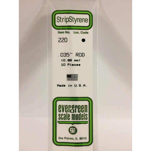 Evergreen Scale ModelsEvergreen 220 Round Rod 0.035 x 14 in (0.88 x 350 mm).035" OD X 14" / .88mm X 35cmEvergreen Scale Models is the world's largest producer of polyst...