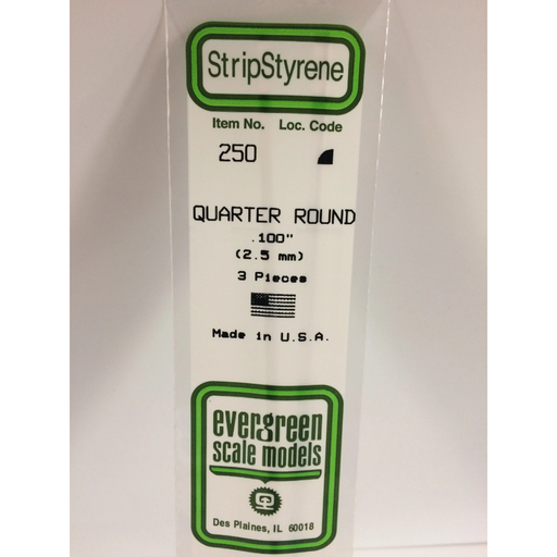 Evergreen Scale ModelsEvergreen 250 Quarter Round 0.100 x 14 in (2.5 x 350 mm).100" x 14" / 2.5mm X 35cmEvergreen Scale Models is the world's largest producer of polyst...