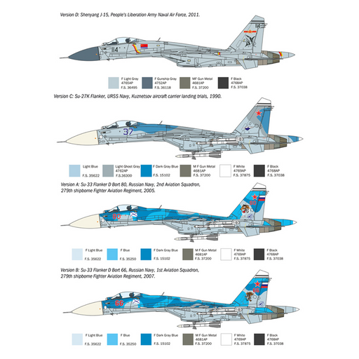 ItaleriSUPER DECALS FOR 4 VERSIONS - COLOR INSTRUCTION SHEETFIGURE NOT INCLUDEDThe twin-engine air superiority fighter Sukhoi Su-27K "Sea Flanker," later ...