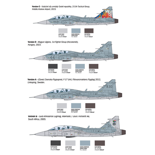 ItaleriNEW DECAL EDITION - SUPER DECAL SHEET FOR 4 VERSIONS - COLOR INSTRUCTION SHEETFIGURES NOT INCLUDEDThe Saab JAS 39 Gripen entered service in the sec...
