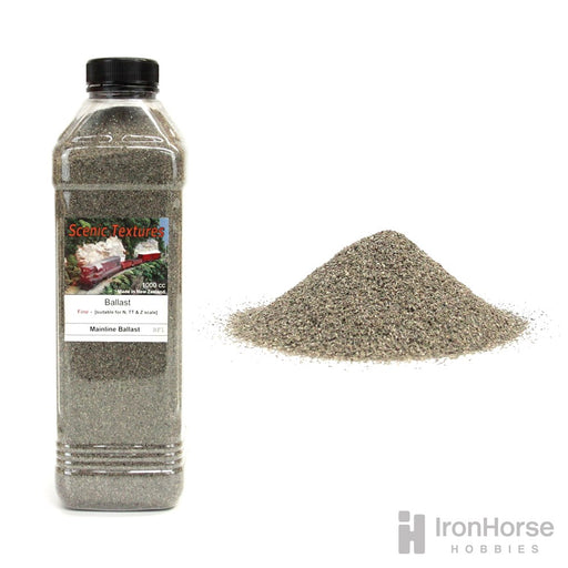 Scenic TexturesLight weight aggregate for use as track ballast.Fine - Suits N and Z scales. 1000cc bottle.Actual colours may differ slightly from images as all Sc...