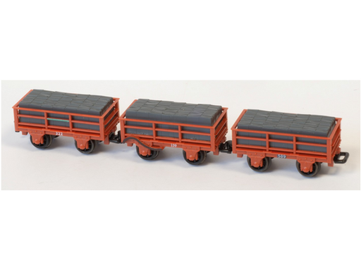 Peco GR-322 OO-9 2 Ton Slate Wagon Pack in Red - Festiniog Railway (Unbraked x2 Braked x1)