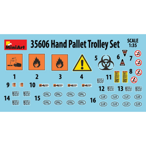 MiniArtHAND PALLET TRUCK SETScale: 1:35Barcode: 4820183313072Series: 1:35 Buildings and AccessoriesBox size: 260x162x35 mmUnassembled Plastic Model Kit Co...