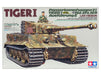 During WWII, the German Tiger I was greatly feared by Allied forces for its thick armor and powerful 88mm gun. This is a 1/35 scale plastic assembly kit model of the German Tiger I late production variant which was put in production from January 1944 and appeared on the Normandy front. Features of the late production variant of the Tiger I, including the distinctive silhouette, the powerful 88mm gun, periscope on commander's cupola, and pressed steel wheels, have all been realistically reproduced. In addition, shell loading area in the turret as well as hatch undersides have detailed finish. Kit includes two types of gun barrels and gun mantlets to enable to build the last production variant model. Furthermore, one commander figure also included.
