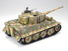 At the time of its introduction in 1942, the German Tiger I was the most powerful and sophisticated tank available anywhere in the world, and is still considered a weaponry masterpiece of that era. Most of the Tiger I's were produced by Henschel, a heavy industry manufacturer in Germany. The later versions of the Tiger I went into production in January 1944, almost two and a half years after its debut. Many features like the thick armor plating, measuring up to 100mm in thickness at some areas, remaining unchanged. Roadwheel improvements consisted of replacing the rubber rimmed roadwheels with new wheels that ran on steel rims, which were insulated from the hub by two rubber rings clamped between disc-shaped pressings. Changes made to the turret were: a commander's cupola with seven vision ports, an anti-aircraft machine gun ring, and a side pivoting hatch; a loader's hatch with periscope; the smoke exhaust outlet relocated to the center of the turret; and internally mounted "S" mine dischargers. The 88mm KwK36(L/56) main gun was considered for replacement with the awesome KwK43(L/71) cannon, as used on the King Tiger, but was never accomplished. It has been said that one Tiger I tank was equal to five Sherman tanks on the battlefield and it was the most feared and respected of all German tanks during the conflict.