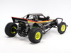 A rugged ABS resin monocoque is more than up to the stresses of off-road driving, and features front swing axle and rear rolling rigid suspension setups for a responsive drive, while a fully enclosed gearbox is has a built-in differential gear to aid smooth cornering. Three-piece wheels are paired with front grooved and rear paddle tires for solid performance.