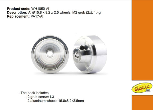Slot.itAluminum ø17.3x8.2x2.5mm wheels, M2 grub, 1.6g (2x) - ex WH1048-Al