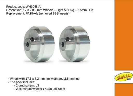 Slot.it W17308225A Aluminum Wheels 17.3x8.2x2.5mm M2 grub 1.6g (2x) - ex WH1048-Al