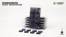 This blister contains 8 thermoplastic 32mm wide round Battle Ready Bases, in an Alien Infestation theme.