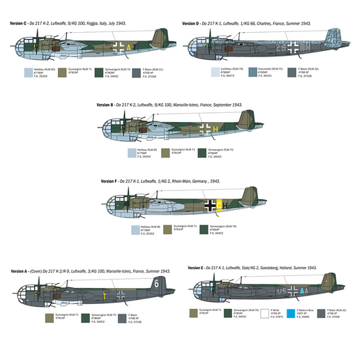 SUPER DECALS SHEET FOR 6 VERSIONS - COLOR INSTRUCTION SHEETThe Dornier Do 217 was a twin-engine, high-wing bomber extensively employed by the Germa...