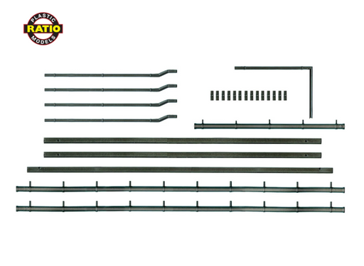 RatioRATIO OO/HOGUTTERS/DOWNPIPESPack includes: 432mm of guttering, 465mm of soffits, 4 x 71mm down pipes, 1 angled water pipe and 14 down pipe brackets.