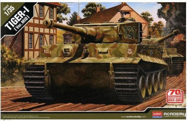 Academy 13287 1:35 Normandy 70th Anniversary Tiger I Mid The most famous WWII German heavy tank with 8.8cm main gun. Tiger I was a German heavy tank of World War II deployed from 1942 in Africa and Europe usually in independent heavy tank battalions. Its final designation was Panzerkampfwagen VI Tiger Ausf. E often shortened to Tiger. The Tiger I gave the Wehrmacht its first armoured fighting vehicle with mounted KwK 36 88-mm gun (not to be confused with 8.8 cm Flak 36). Only 1,347 were built between August 1942 and August 1944.
