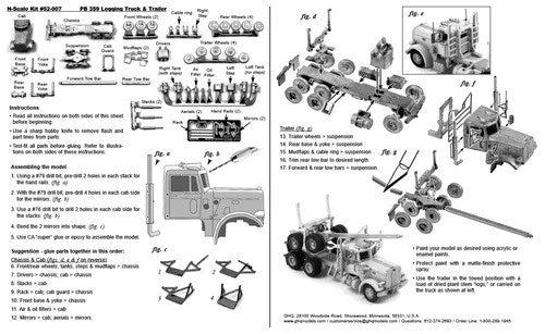 GHQ 52007 N American Trucks - (Unpainted Metal Kit) -- 359 Tractor w/Skeleton Logging Trailer