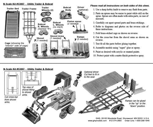 GHQ 53007 N Construction Equipment (Unpainted Metal Kit) -- Bobcat Skid Steer Loader w/Utility Trailer
